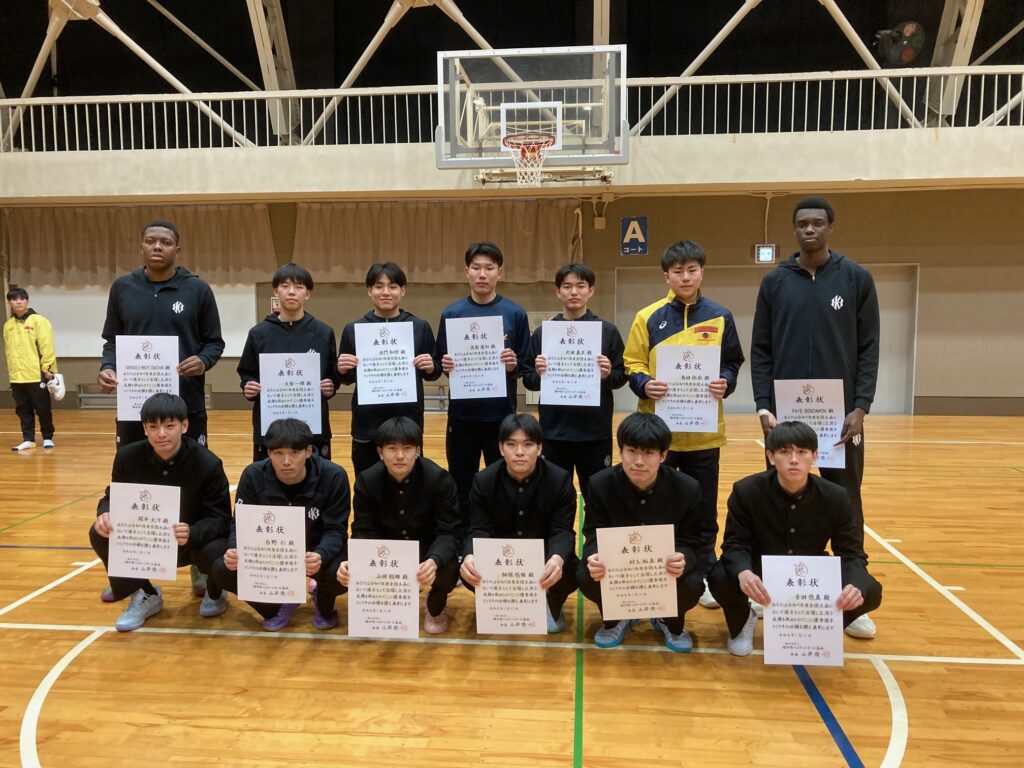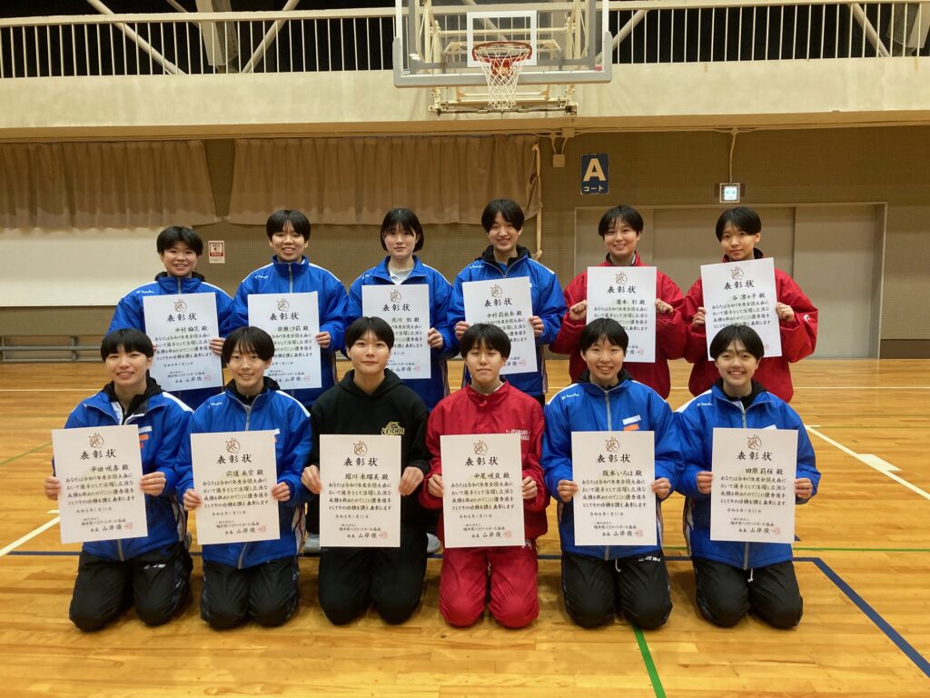 1月11日(日)午後、福井商業高校体育館にて県高校新人大会2次予選(北信越高校新人大会予選)終了後の表彰式において、令和7年度協会表彰(高校生優秀選手賞)を行いました。この賞は令和7年度に行われた全国大会において5位以内の入賞を果たしたチームの選手に贈られるものです。受賞者は北陸高校男子13名(全国高校総体3位)、県選抜少年男子10名(国民スポーツ大会5位)、県選抜少年女子12名(国民スポーツ大会5位)の総勢35名です。受賞されたみなさんの今後ますますの活躍を期待するところです。なお指導者の表彰は5月の社員総会において行うこととしています。