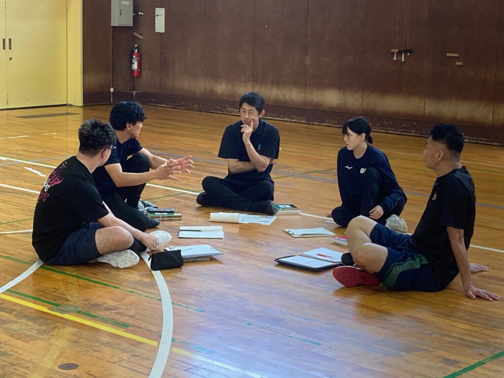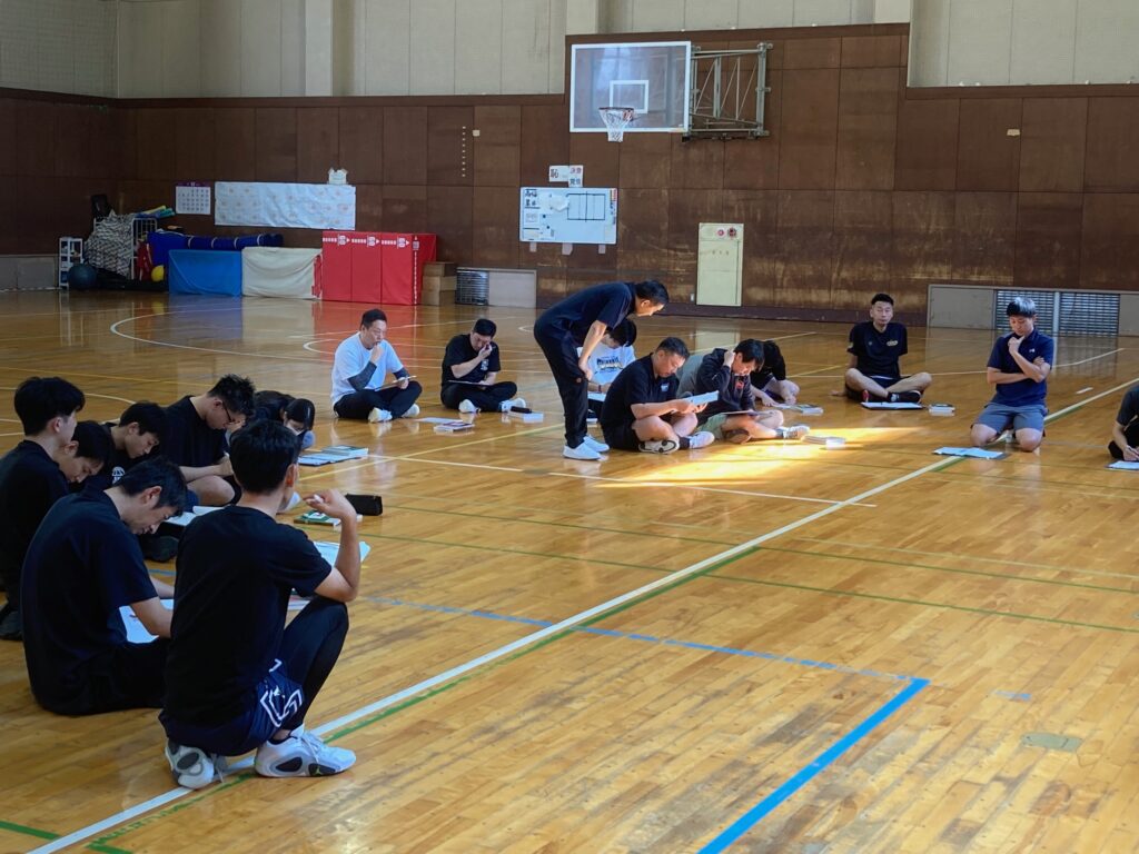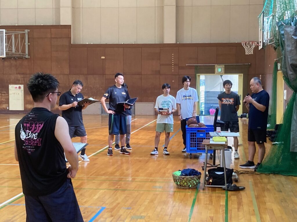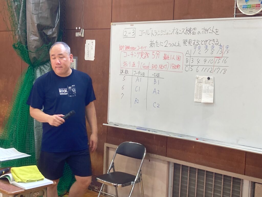 講師は福井県コーチデベロッパーの水口武彦氏(指導者養成委員長)、石田洋志氏、内海雅人氏の3氏が担当しました。C級コーチを目指す県内の指導者18名が参加し、コンディショニング(フィジカル、メンタル)の方法やチームでフェンス、トラジッションオフェンス、ハーフコートでの2対2、3対3などのコーチングの方法を学びました。
